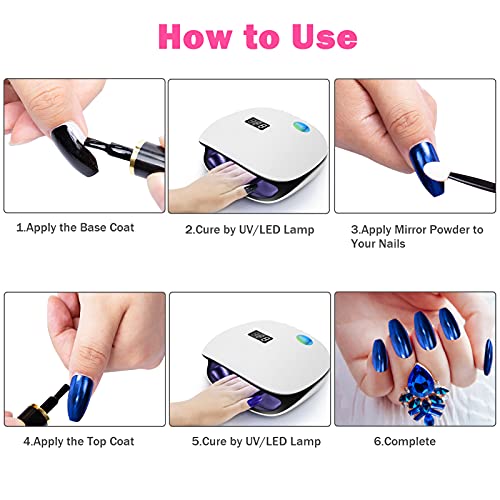 Spiegeleffekt – Verschiedene Grundfarben repräsentieren unterschiedliche Spiegeleffekte. Chrom reines puder können ein charmantes und besonderes Erscheinungsbild verleihen und Ihre Nägel so wunderschön machen.