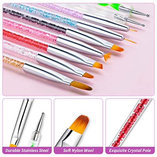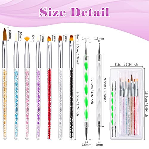 Nagelkunstpinsel und Dotting Pen bestehen aus Nylonborsten und einem haltbaren Metall- und Acrylgriff mit exquisitem Kristall.