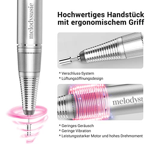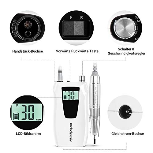 MelodySusie Professionell Nagelfräser, 30000 U/min Elektrische Nagelfeile Wiederaufladbar Tragbar Akku Maniküre Pediküre…