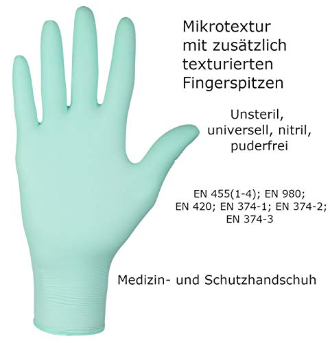 MERCATOR MEDICAL Nitrylhandschuhe | XS – XL | NITRYLEX GREEN Einweghandschuhe Puderfrei Textur an den Fingerspitzen Mikrotextur, GröÃe:S – 100 Stück, Farbe:Grün