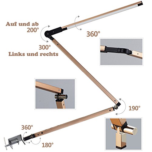 ◆Außerordentlich einstellbar – Metall 180 ° drehbarem Leuchtenkopf, 35+35cm verstellbaren Arm, drehbaren Körper. Starke Klammer unterstützt bis zu 5,5cm Tischplatte.
