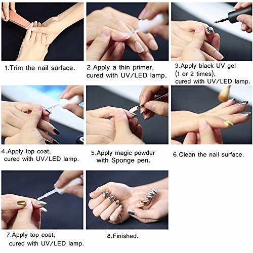 Achtung: UV-/LED-Lampe, UV-Basislack und UV-Nagellack für Chrom-Effekt erforderlich.