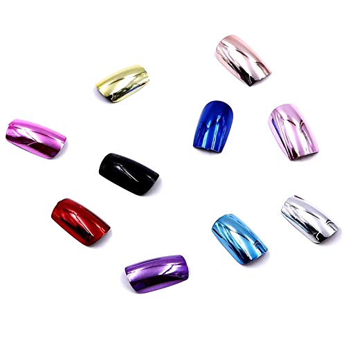 MoreChioce Künstliche Nägel Glitzer,24 Stück Natürliche Bling Schwarz Spiegel Falsche Nägel Metall-Spiegel-Effekt Strass…