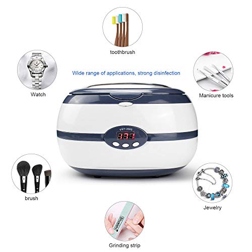 ALLGEMEINE KAPAZITÄT – Der multifunktionale Ultraschallreiniger ist ein 600-ml-Tank und besteht jeglicher Edelstahl 304, der keine Gegenstände beschädigt. Eine vertrauenswürdige Qualitäts-Ultraschall-Schmuckreinigungsmaschine.