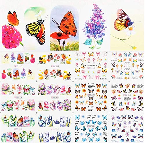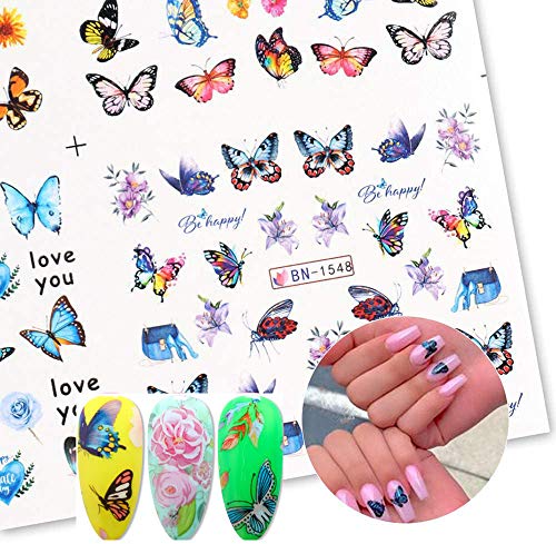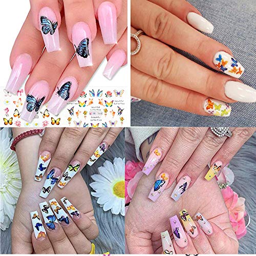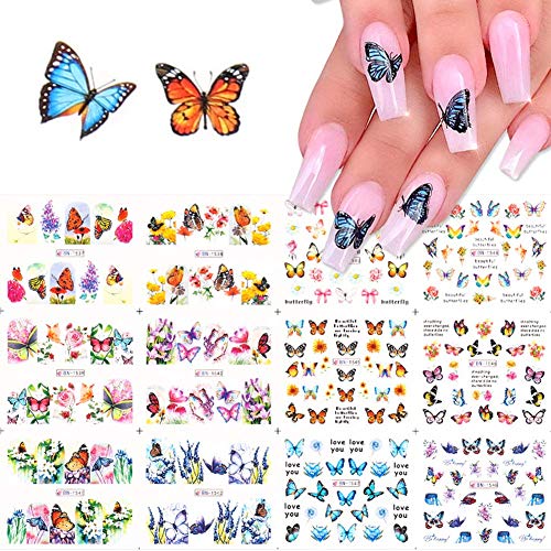 Nagel Wasserzeichen Aufkleber Paket: 12 Blatt verschiedene Muster Schmetterling Aufkleber, lassen Sie die schillerndste werden.