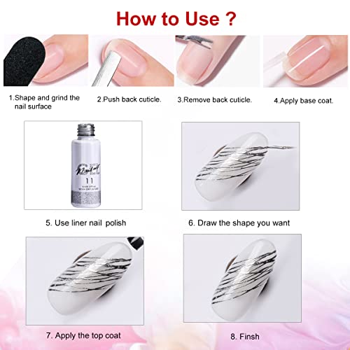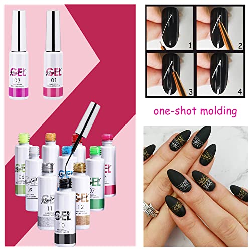 【Multifunktionsverwendung】 Nicht hingegen als DIY Nail Draw Liner verwenden, sondern vulgo als Nagellack, Gel Art Paint oder andere DIY Nail Art selbst. Kein Schrumpfen und kein Gelfluss, Vollfarbe und einfache Färbung. Ob es ist ein Anfänger oder ein Nagelstudio, können Sie ganz einfach schöne Nägel zeichnen.