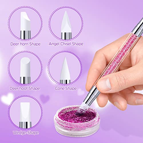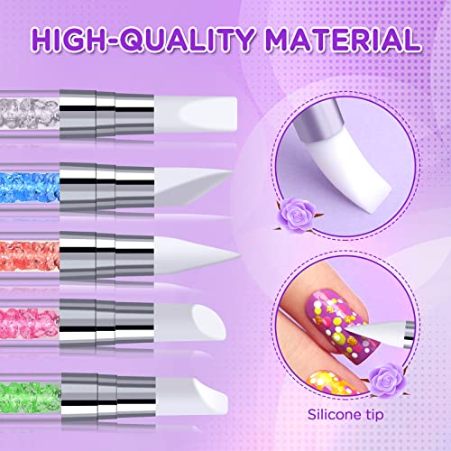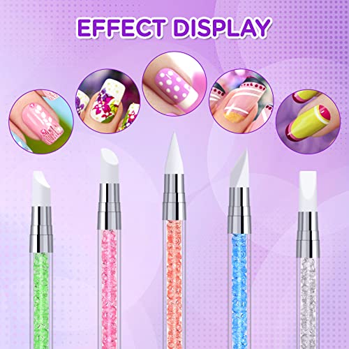 🍀【5 Verschiedene Sculpting Pens】Jeglicher Silikon-Nagelkunststift hat zwei Bürstenköpfe mit unterschiedlichen Arrangieren, zwei Bürstenköpfe mit unterschiedlichen Funktionen, um unterschiedliche Anforderungen zu beenden. (Keil, Hirschhuf, Hirschhorn, Engelmeißel, Kegel.)
