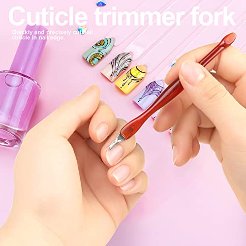 Nagelhaut-Werkzeuge: Die Nagelhaut-Trimmergabel mit Kunststoffgriff mit scharfer Klinge zum Kratzen der schwer zu entfernenden Hautreste auf dem Nagel und ideal zum Ablösen von Kleber bei der Verwendung von Acrylnägeln. Der doppelseitige Nagelhautschieber eignet sich hervorragend zum Ablösen von Soak-Off-Gelnägeln, zum Zurückschieben abgestorbener Haut, zum Ablösen von Nagelhaut oder zum Ablösen von Gefälle im Nagelrand.