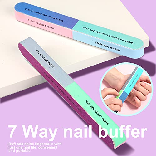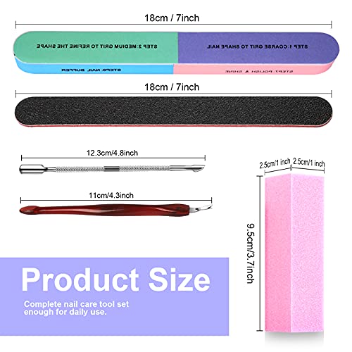 Große Betrag: Im Lieferumfang sind viele Nagelpflegeutensilien enthalten, genug für den täglichen Gebrauch oder als Ersatz- 10 rechteckige Schwamm-Pufferblöcke, 4 doppelseitige Nagelfeile mit 100/180er-Körnung, 2 vielseitige Pufferblöcke mit 7 Spezifizieren, mit niedlicher Nagelhauttrimmer-Gabel und doppelseitigem Nagelhautschieber.