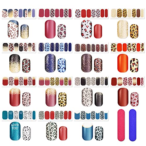💅 【Was Sie bekommen】- kommt mit 15 Blatt Gradient Full maniko nails starter set nagelfolien in Leopard, jedes Blatt enthält 14 Phase, insgesamt 210 Phase, ausreichend, um Ihre DIY Nail Art Dekoration Bedürfnisse zu verriegeln, kommt mit 2 Phase nagelfeile, kann viel bringen Bequemlichkeit für den DIY-Ablauf