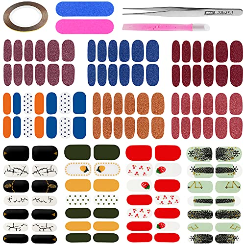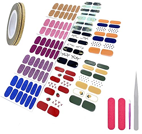 【ENTHALTEN】: 5 Arten von Nagelstickern mit Mustern, je 14 Teilbereich, 5 Arten von einfarbigen Nagelstickern je 12 Teilbereich, 2 Teilbereich Nagelfeilen, 1 Teilbereich Einem Gummi Nagel Nagelhautschieber,1Rolle Nagelband,1 Eine spitze Pinzette.