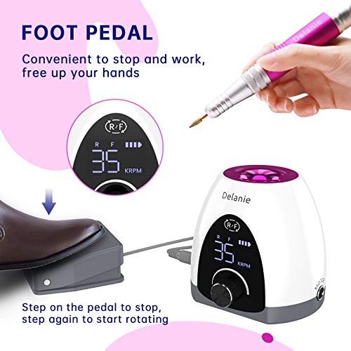 FUSSPEDALMODUS UND BITS SET: Verfügt über Fuß-Steuermodi: Treten das Pedal zu anhalten, und treten neuerlich zu Rödeln. Dadurch bleibt die Hand frei. Ausgestattet mit 6 Bits und 25 Schleifbändern ideal für ALLE Nail Art-Rödeln und sowohl für die professionelle als aka für Anfänger qualifiziert.