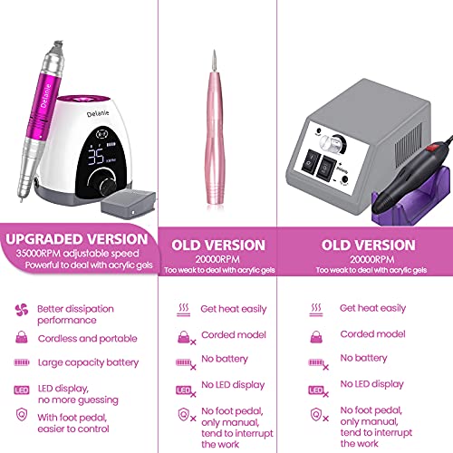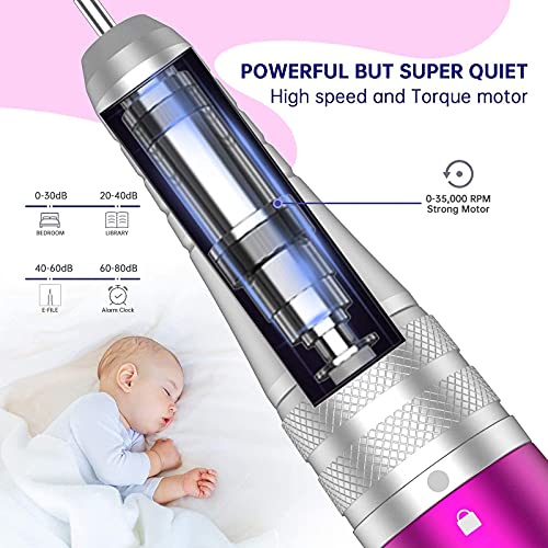 Elektrische Nagelfräser für Gelnägel 35000 U/Min, Leise Wiederaufladbare Elektrische Nagelfeile, Polygel, Acryl Gele…