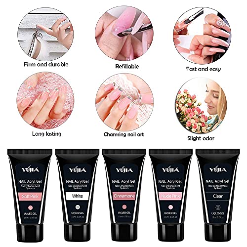 Nagelgel, Nagelverlängerungs Gel Kit, 15 ml * 5 Farben Nagelgel mit einfacher Anwendung + UV- / LED-Lampe…