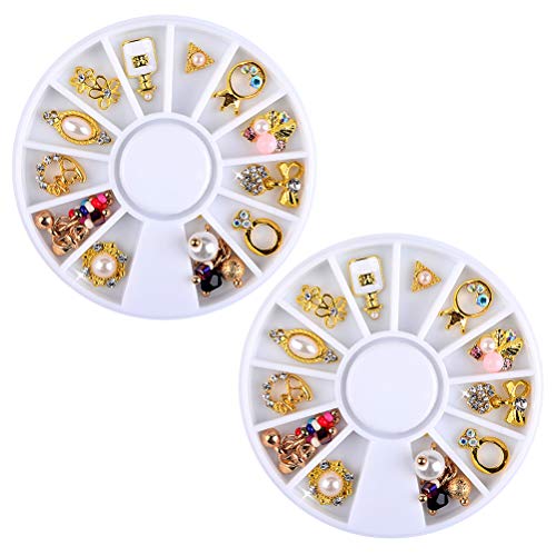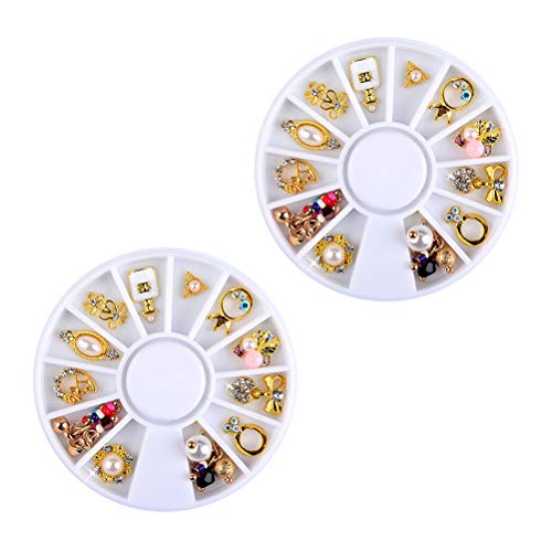 2 Sets x 12 Gitter Metall Nieten Nieten Nieten Nieten DIY Nailart Design Dekorationen Perlen Glas Kristall Nailart Zubehör an Stelle Mädchen und Frauen
