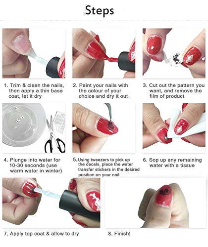 EINFACH UND EINFACH ZU VERWENDEN: Diese einfach abziehbaren und anzubringenden Aufkleber haben unterschiedliche Größen für Ihre Nägel. Lungern Sie einfach das gewählte Motiv von der Folie und kleben Sie den 3D-Aufkleber auf Ihre Nägel. Es ist ratsam, eine Deckschicht aufzutragen, um sicherzustellen, dass das Design länger hält. Die Verwendung einer Pinzette zum Lungern des Musters von der Folie ist ideal. Sie können Ihre eigenen Designs erstellen und die Muster für einen aufregenden Look mis