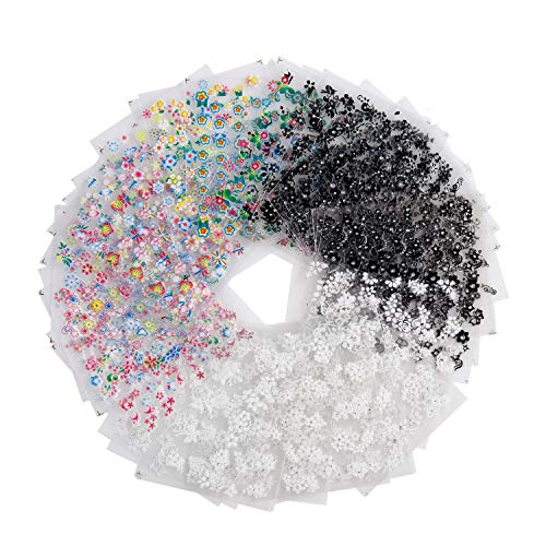 MEHRFACHE ERFAHRUNG MIT NAGELKARTEN: 50 Blätter mit jeweils Dutzenden von Abziehbildern und mehreren Blumenmustern. Farbe: Schwarz, Weiß und Mehrfarben.