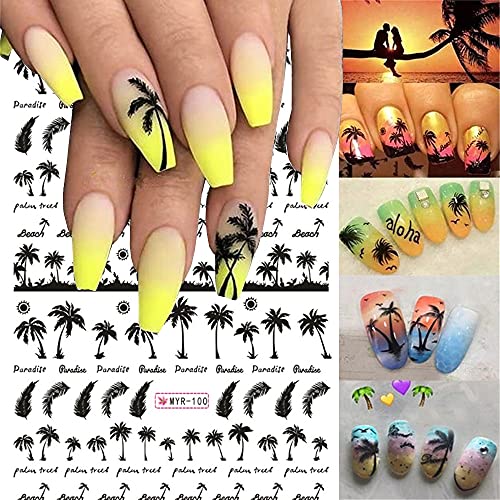 🌴Sommer Nagelsticker: 4 Blatt schwarze Palmen-Nagelsticker, eine Vielzahl von Strandelementen zur Auswahl, genießen Sie die Begeisterung, die der Sommer mit sich bringt.