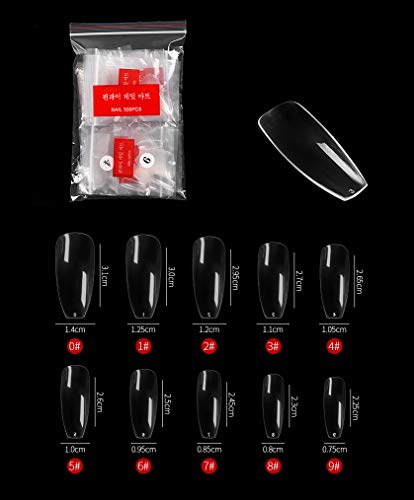 💞 【500 STÜCKE NAGELTIPPS】 Acrylnagelspitzen sind in klarer Sargform mit vollständiger Hülle erhältlich. Sie haben 10 verschiedene Größen, die leicht zu Ihren Nägeln passen. Es gibt auch Größenangaben auf dem Paket und der Oberseite der Spitzen. Sehr leicht zu verfolgen und zu ablesen. Es ist ein ideales Werkzeug für Acrylnägel, Polygel, Verlängerungsnagelgel oder Sargnageldesigns usw.