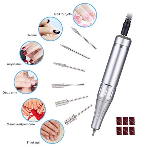 6-in-1 Multifunktions-Nagelfeile: Professionelle elektrische Nagelfeile mit 6 Aufsätzen zum Stutzen, Glätten, Aufziehen und Abschleifen von Nägeln und zum Herumlungern von Nagelhaut, aka passend für Gel-/Acrylnägel oder Fußnägel.