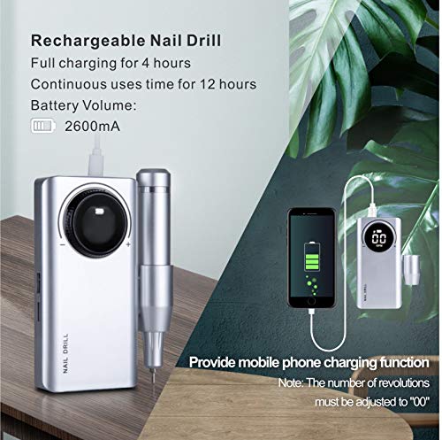 Wiederaufladbar und tragbar: Die Ladung dauert ca. 4 Stunden und kann bis zu 12 Stunden ohne Verwendung des Stromkabels verwendet werden. Langlebiger Akku und hohe Akku-Kapazität von 2600 mA so leicht wie ein Handy, damit Sie ihn transportieren können. Der kabellose Nagelschleifer ist kompakt genug (7,0 x 13,7 x 2,3 cm) für die Aufbewahrung in Ihrer Handtasche oder Ihrer Tasche.