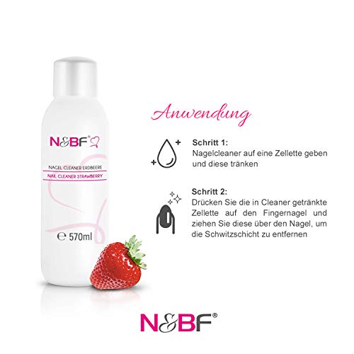 Mit dem NAILS & BEAUTY FACTORY Duft Cleaner Erdbeer nutzen Sie ein unverzichtbares Hilfsmittel beim modernen Nageldesign. Der Cleaner entfernt problemlos die Schwitzschicht nach dem Härten des UV-Gels. Dabei bekommt das Finish der Nagelmodellage einen tollen und unverwechselbaren Glanz. Dabei weckt der Geruch der reifen Erdbeer sommerliche Gefühle und schmeichelnd den Sinnen. Ihre Kunden werden bei dem Geruch der reifen Erdbeere an höchsten Genuss dieser tollen Frucht verbannen. Wir empfehlen die NAILS FACTORY Zelletten mit zu abonnieren und diese mit dem Nagel Cleaner zu verwenden. Die Zelletten einfach einfeuchten und mit den eingefeuchteten Zelletten die Schwitzschicht oder den restlichen Feilstaub problemlos abkuppeln. Die Anwendung des NAILS FACTORY Nagel Cleaners ist einfach handhabbar. Der Cleaner ist leicht desinfizierend, leicht entfettend und hautschonend.