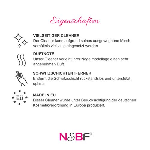 FÜR SENSIBLE NÄGEL: Der Nagel Cleaner ist aufgrund des Mischverhältnisses von Isopropanol (70%) und Wasser (30%) alias für besonders empfindliche Fingernägel passend. Durch den Wasseranteil ist er schonender für die Nägel als herkömmliche Cleaner mit hohem Isopropanolgehalt und kann im Kontrast dazu alias bei sensiblen Kunden hervorragend eingesetzt werden.