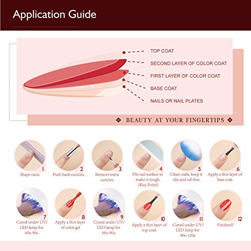 SCHNELLE AUSHÄRTUNG MIT LED-NAGELLAMPE: Soak off uv gel politur muss unter der UV / LED-Lampe ausgehärtet werden.Mit 48w UV/LED Lampe,Sie können Ihr Farbgel in hinwieder 60 Sekunden aushärten und base unterlack & top Überlack in 90 Sekunden.(Die Lampe kann je nach Leistung länger dauern.)
