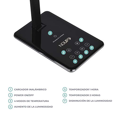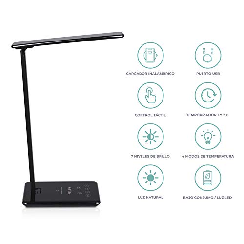 Produktbeschreibung Farbe: Weiß | Größe: 48 LEDs Diese vielseitige Schreibtischlampe bietet Ihnen mehr als aber Licht. Ein Nutzungserlebnis, das Energieeffizienz für seine LED-Lampen und ein moderneres Design mit einwandfreien Oberflächen kombiniert. Die Bequemlichkeit, faltbar und kompakt zu sein, macht es allumfassend tragbar und auch für Jugendliche und Kinder leicht zu bedienen. Design und Praktikabilität: Sein Stil ist an alle Arten von Umgebungen anpassbar, zu Hause, am Arbeitsplatz oder im Büro. Gebaut mit Qi-Funktechnologie zum Laden kompatibler Mobiltelefone und mit einem USB-Anschluss zum Anschließen an jedes andere mobile Gerät, während die Abbildung der Beleuchtung mit einem Licht erfüllt wird, das in Farbe und Helligkeit einstellbar ist. Auch für seinen automatischen Abschalt-Timer und die Touch-Steuerung für 1 und 2 Stunden, unter anderem für die vollständigste Tischlampe auf dem Absatzgebiet. Kompatible Telefone: iPhone 8 Plus, XS, XS Max, XR Samsung Galaxy S9 und S8 Plus LGV30 Pass auf deine Augen auf: Die Lichtqualität garantiert Abschirmung für Ihre Augen, indem sie weder Flackern noch Blendung ausstrahlt. Wenn Sie den Klapparm in verschiedenen Positionen einstellen, genießen Sie eine unschlagbare Benutzererfahrung. Stellen Sie sich sogar vor, dass Ihre Kinder (Kinder oder Jugendliche) es bei Tageslicht und einer zum Lesen geeigneten Helligkeit für ihren Studiertisch verwenden können oder dass sie ihr Zimmer von ihrem Nachttisch aus mit einem weichen und warmen Licht oder als Nachtlicht für beleuchten können deine Kleinen. Weitere technische Details: Ereignis: 5 V / 2,5 A. Abschaben: 5W LED-Betrag: 48 Stückchen x 4014 LEDs Stromversorgung des kabellosen Ladegeräts: 5V / 1A Wirkungsgrad: ≥ 76% Paket beinhaltet: – Lampe x 1 – Kabel mit Stecker oder Adapter (Farbe: SCHWARZ) x 1 (mit Zertifikat für die Europäische Union) – Handbuch