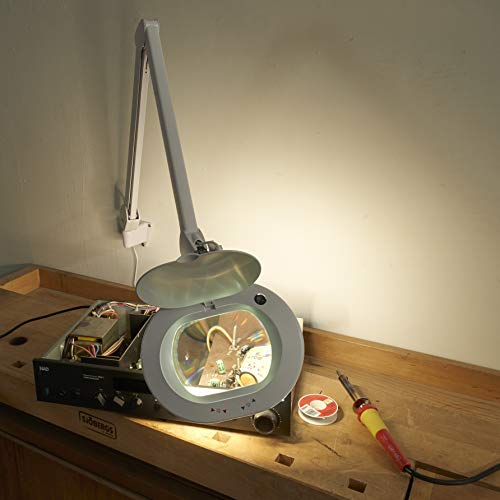 Die Arbeitslampe ist ideal passend für alle Tätig sein und Reparaturen bei denen eine Lupe benötigt wird. Mit dem schwenk- und ausziehbarem Tischgestell, kann die Vergrößerungslupe ideal an Ihre Bedürfnisse aufeinander abgestimmt werden. Durch die veränderbare Farbtemperatur von 3000K warmweiß bis 6500K kaltweiß, erhalten Sie die beste Beleuchtungsoption für die anstehenden Tätig sein. Es sind jeweils 30 warmweiße und 30 kaltweiße LEDs verbaut die sich individuell in der Helligkeit steuern lassen.
