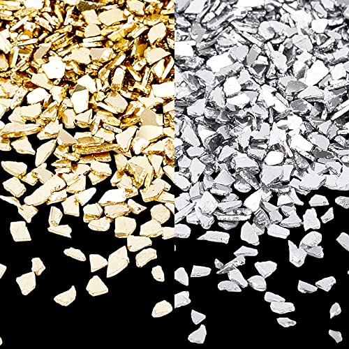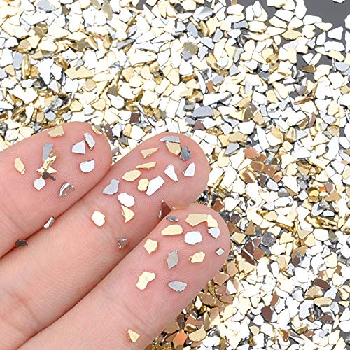 【Premium Qualität】 – Aus hochwertigem Glas, Unregelmäßig zerkleinerte Späne mit metallischer Farbe, mit glänzender Oberfläche verarbeitet, geeignet für Harz Handwerk, Nail-Art, usw..