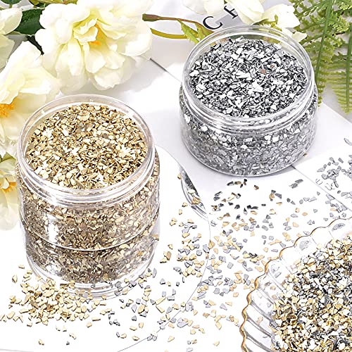 【Paket enthalten】 – Hier kommen mit 280g Elektroplatten-Glaschips in zwei Farben – Argentum und Gold, 140 g / Farbe. So Mischung tolle Glaschips für Ihre Bastelprojekte!