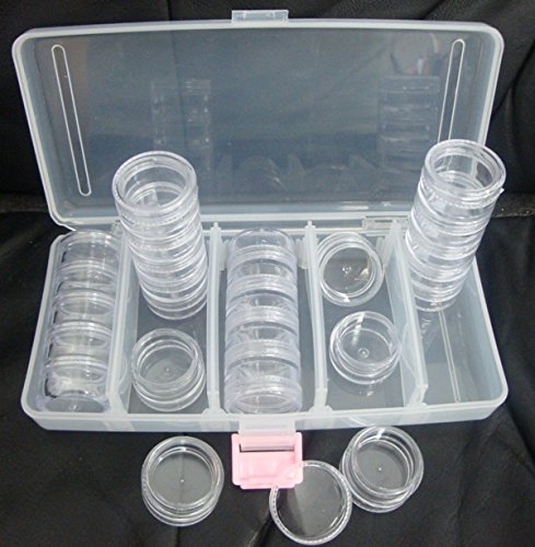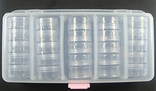 PERLENBOX / SORTIERBOX FÜR SELBSTBASTLER MIT 25 RUNDE DOSEN SUPER BOX FÜR PERLEN