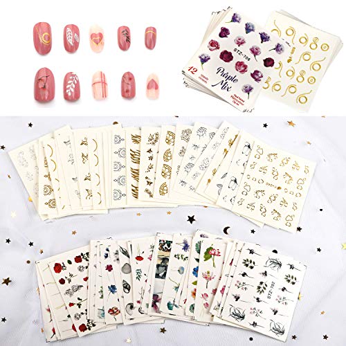 WERTSATZ – Mit 54 Blatt verschiedenen Nail Art Tattoo-Aufklebern, ca. 1000 STÜCK Muster. Farbe enthält Gold und Argentum. Der transparente Hintergrundaufkleber hat den gleichen Effekt wie der echte Lack.