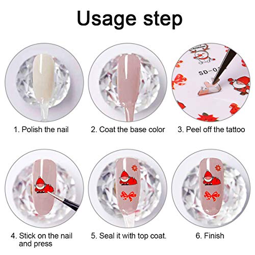 Anwendung: Selbstklebende Nail Art Sticker für alle Fingernägel, Zehennägel und Nagelspitzen; Diese Abziehbilder sind riesig und fein, wenn Sie lange Nägel haben. Für kürzere Nägel können sie Vulgo geschnitten werden und behalten ein hübsches Weihnachtsmuster.