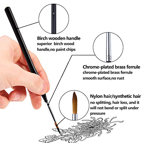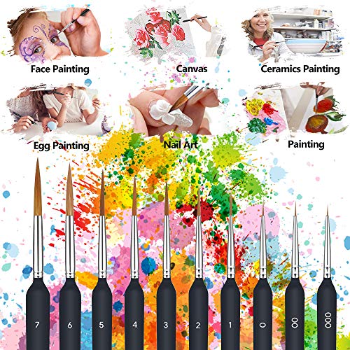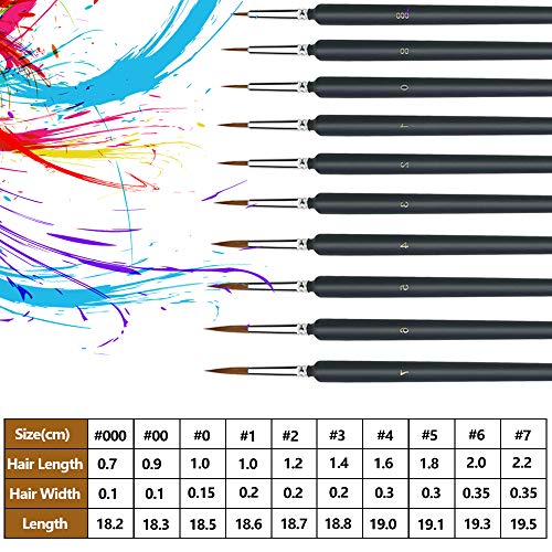 Professional Strokes : Kommt mit 10 Detail Pinsel in Größe 000, 00, 0, 1, 2, 3, 4,5,6,7 Stück Pinsel jeder Größe, genug, um Ihre verschiedenen Bedürfnisse.