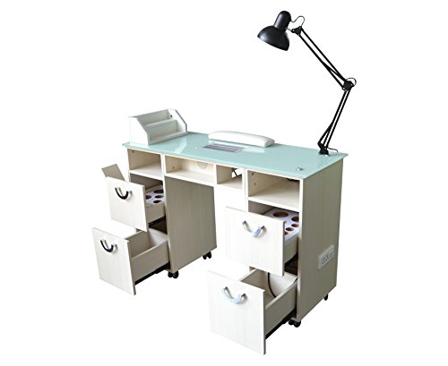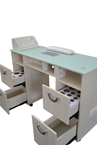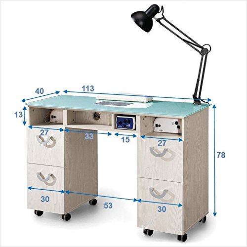 Tisch zugunsten Maniküre, kosmetische Behandlungen, Nagelaufbau.Elegante Ablagerung leer Wasserglas Mithilfe doppelter Kommode zum Verstauen von Zubehör.Mithilfe praktischen Rädern, um 360 Nuance drehbar.Inklusive Absaugung Mithilfe Sicherheitsgitter darüber hinaus Staubbeutel, Kissen zur Ablagerung der Arme, Lampe darüber hinaus Nagellackhalter.Details: elegante Glasablage – Breite der Ablagerung 113 cm – Hölle 40 cm – Höhe 78 cm – Tragkraft:50 kg – 2 Schubladen:30 x 40 cm Mithilfe 2 Schubladen darüber hinaus Fächern zugunsten Zubehör, 8 Rollen, Handablage zugunsten komfortables Bearbeiten, Absauger zugunsten Pulverrückstände, Nagellackhalter, Tischleuchte.