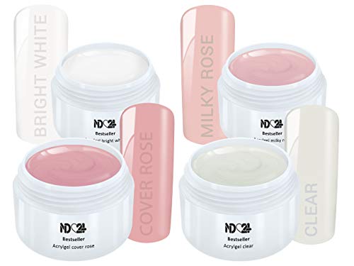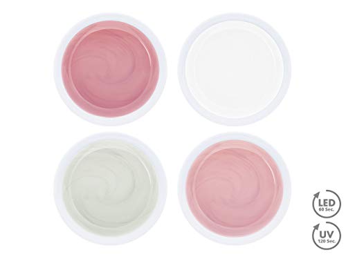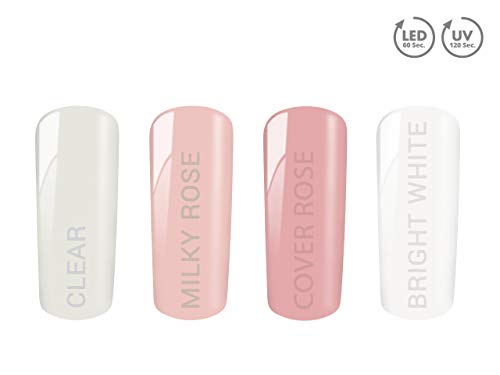 TOPSELLER wie komplette GELSERIE – 5g clear + 5g milky rose + 5g bright white + 5g cover rose