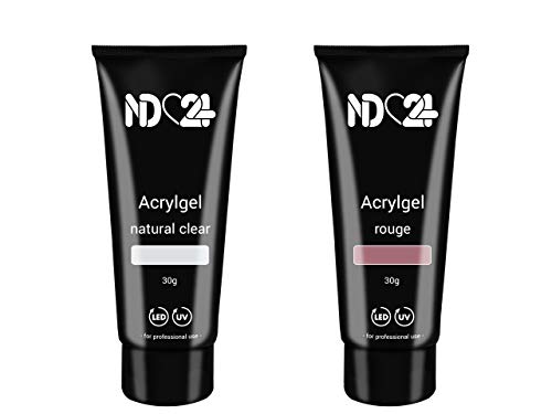 PREMIUM SPAR SET Inhalt: 30g AcrylGel Tube clear + 30g AcrylGel Tube rouge – Studioqualität MADE IN GERMANY