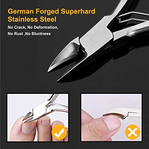 Dick, trocken oder gewachsene Nägel? Diese handgeschliffenen Zehennagelscherer haben gestochen scharfe Klingen, die durch dickere Nägel mit Leichtigkeit reibungslos Sensen.;Wird nicht rosten, tränken oder korrodieren: Hergestellt aus medizinischem Edelstahl, der Rostbildung verhindert und auch hilft, Klingen länger schärfer zu halten. Das sind podiatrist-Qualität!;Ergonomisch für Benutzerfreundlichkeit: Abseitsposition lange Griffe und Satin-Finish sorgen für verbesserten Griff und Hebel für Senioren, Menschen mit Arthritis & Behinderten. Einziehbarer Federclip.;Schutzabdeckung enthalten: Plastikspitzenabdeckung schützt die ultra-scharfen Klingen, wenn nicht in Gebrauch und verringert das Verletzungsrisiko.;Unbedingte 100% Geld-Zurück-Garantie: Diese Clipper sind für das Leben garantiert! Andererseits wenn du aus irgendeinem Grund nicht zufrieden bist, lass es uns wissen und bekomme eine Mühe.