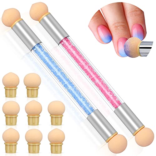 Dual Head Design: Nagelschwämme werden mit runden und scharfen Schwämmen geliefert, eignen sich zum Erstellen von Farbverläufen und zum Auftragen von Glitzerpulver. Sie können jedes schöne Gemälde nach Belieben zeichnen