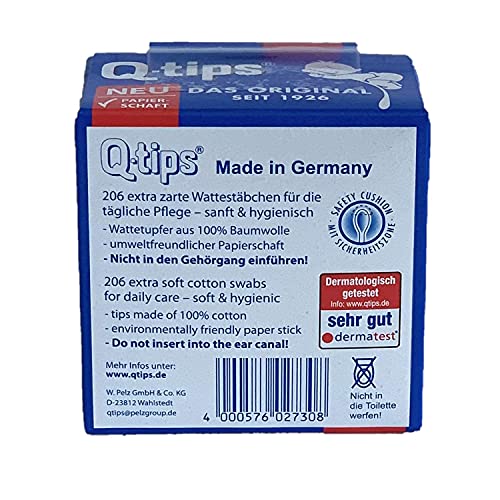 QUALITÄT: Die Q-Tips Wattestäbchen werden bloß nach höchsten Qualitätsstandards hergestellt. Der stabile Schaft Jeder Handelspapier außerdem die beiden Tupfer Jeder weicher Baumwolle, erzielen eine effektive außerdem gründliche Reinigung des Ohres.