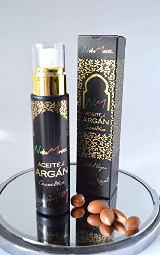 100% REINES UND NATÜRLICHES ARGANÖL / KALTGEPRESST. Hergestellt in Marokko – EINE ZUTAT: ARGANIA SPINOSA. 50 ml dunkles Glasbehälter mit Austeiler, der es vor Licht schützt und die Unveränderlichkeit seiner kosmetischen Eigenschaften garantiert