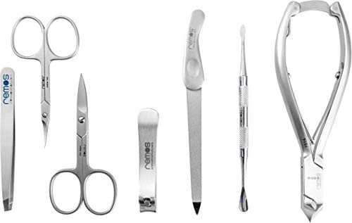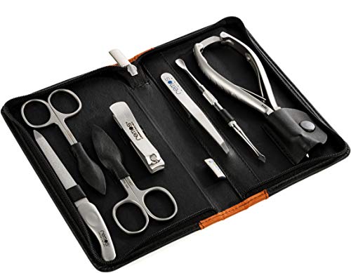 Produkte die Freude machen: Reiseset aus echtem Leder, mit 7 Instrumenten aus rostfreiem Edelstahl, Nagelschere, Hautschere, Nagelfeile, Augenbrauenpinzette, Zwicker, Pedikürzange, Nagelhautschieber.