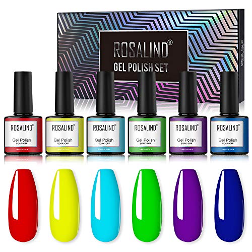 ❤ROSALIND Gel Nagellack Set: 6 x 10ml Neon-Farbserien-Nagellack, schöne Farben, charmante fluoreszierende Serienfarben, geben Ihnen ein charmantes Make-up. Geeignet für jede tägliche Ausarbeitung oder Verabredung, Party oder Zeremonie.