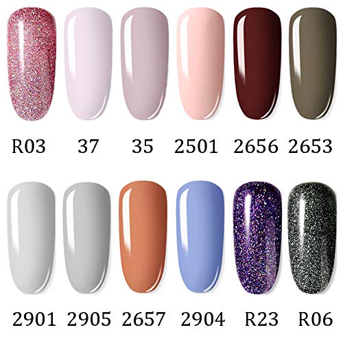 ROSALIND 12 Farben Funkeln UV Nagellack, Nude Pink Glitzer Lila Braun Grau Grün Blau Mehrfarbig Gel Nagellack Kit, UV…