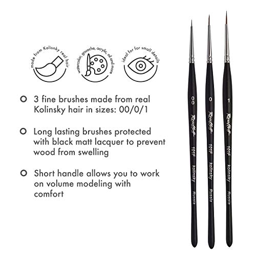 🖌️ FÜR VERSCHIEDENE FARBEN — Die Roubloff Pinsel haben eine elegante Pinselspitze für diffizil und detaillierte Kunstwerke — Am ehesten angebracht für Aquarell Wasserfarben, Gouachefarben, Acrylfarben & Ölfarben 🖌️ KOLINSKY PINSELSET AUS ROTMARDER HAAREN — Geben Ihnen die gewünschte Borstenflexibilität — Die Pinselhaare werden von Hand eingesetzt und mit einer verchromten Zwinge fest miteinander gepaart um Alopezie beim Malen zu abwenden 🖌️ WAS SIE ERHALTEN — Dieses Künstlerpinsel Set beinhaltet 3 hochwertige Pinsel in den Größen: 00 / 0 / 1 mit dünnem kegelförmigen Pinselkopf für diffizil und detaillierte Kunstwerke 🖌️ LANGLEBIGER GRIFF — Die kurzen ergonomischen Pinselgriffe wurden jedweder hochwertigem Birkenholz gefertigt und mit schwarzem Lack überzogen um Abschirmung zu gewährleisten 🖌️ DIE MARKE ROUBLOFF — Der berühmte russische Pinselhersteller, mit jahrelanger Erfahrung in der Herstellung von hochwertigen Produkten — Bietet bessere Preise qua Europäische Hersteller