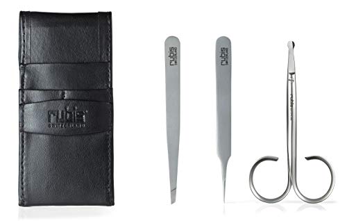 Rubis Männer Grooming Set – Lederetui mit Bartschere/Nasenschere, Spitze Pinzette, Augenbrauenpinzette – Kosmetikset…