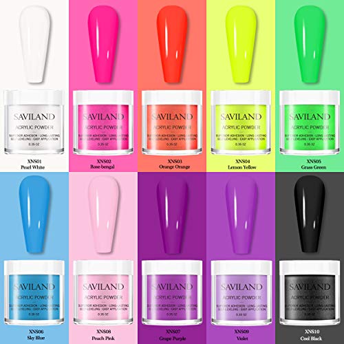 ❤ 【COSTUME EXQUIS】 L’ensemble de poudre acrylique Saviland comprend 10 belles couleurs néon. L’ensemble de poudre acrylique de 10 couleurs est un cadeau idéal pour les manucures professionnelles et les amateurs de bricolage. Peut être utilisé sur les ongles naturels, les faux ongles, les pointes d’ongles semi-couvercles, les ongles en acrylique et les ongles français.