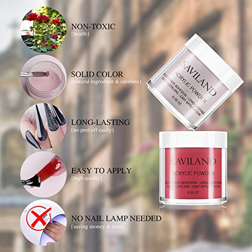 ❤【LANGLEBIG & NICHT-GELBEND】 Saviland Acrylpulver hat eine ausgezeichnete Haftung mit flüssigem Monomer und gewährleistet so die Farbklarheit und beste Haftung auf Naturnagelplatten. Es kann bekannt als ohne Aushärtung des Nageltrockners mehr qua 28 Tage halten. Nicht vergilbende oder mattierende Effekte.